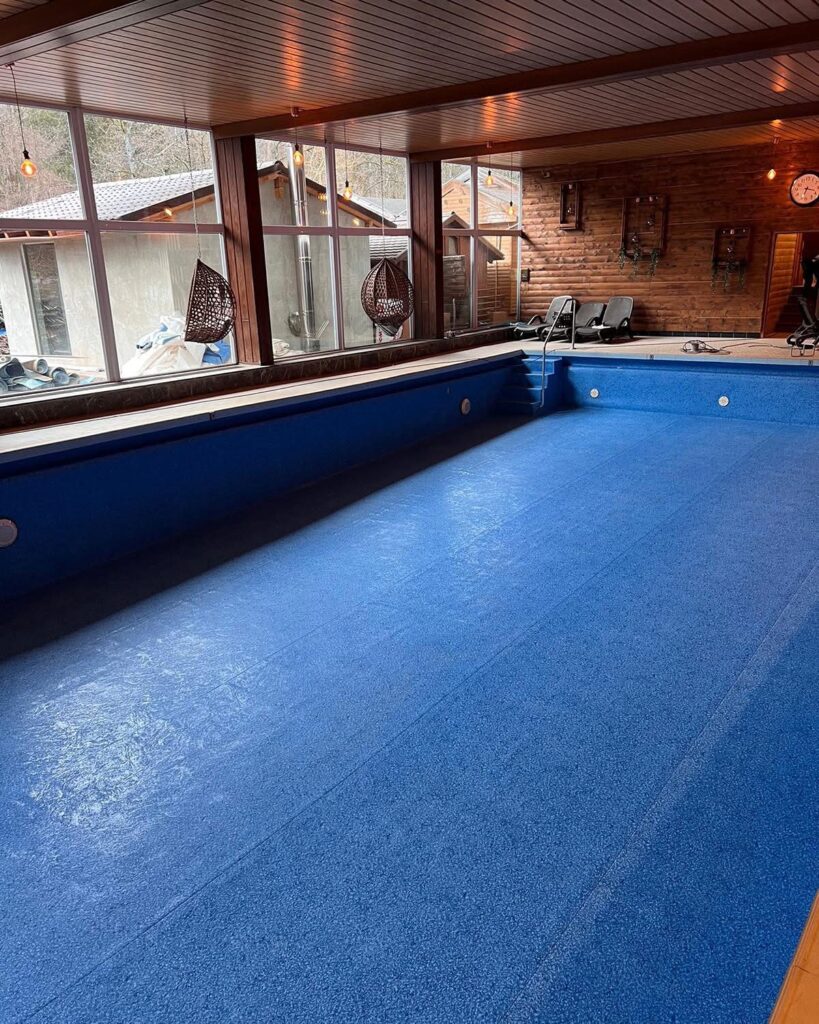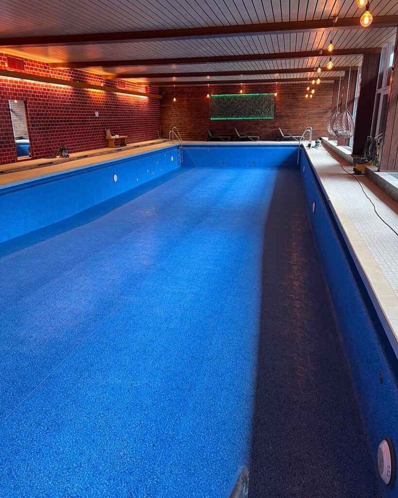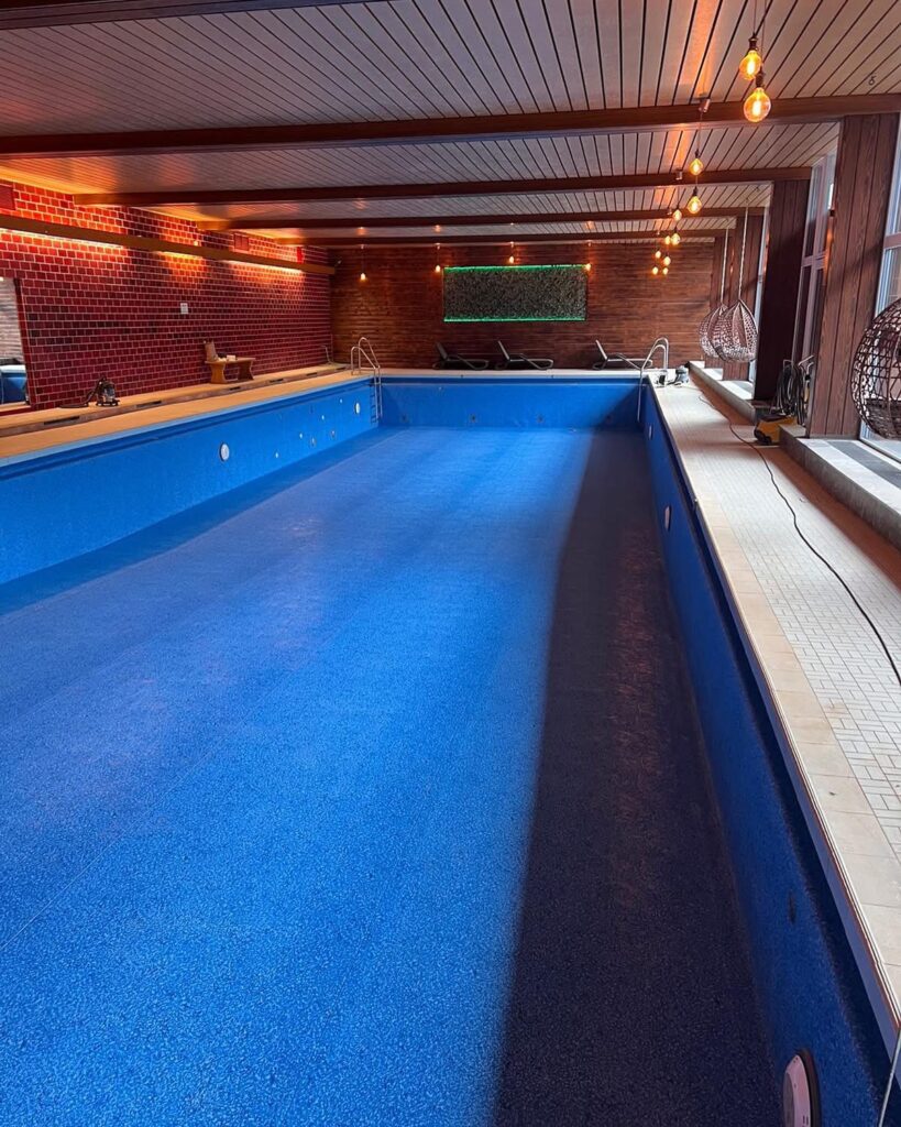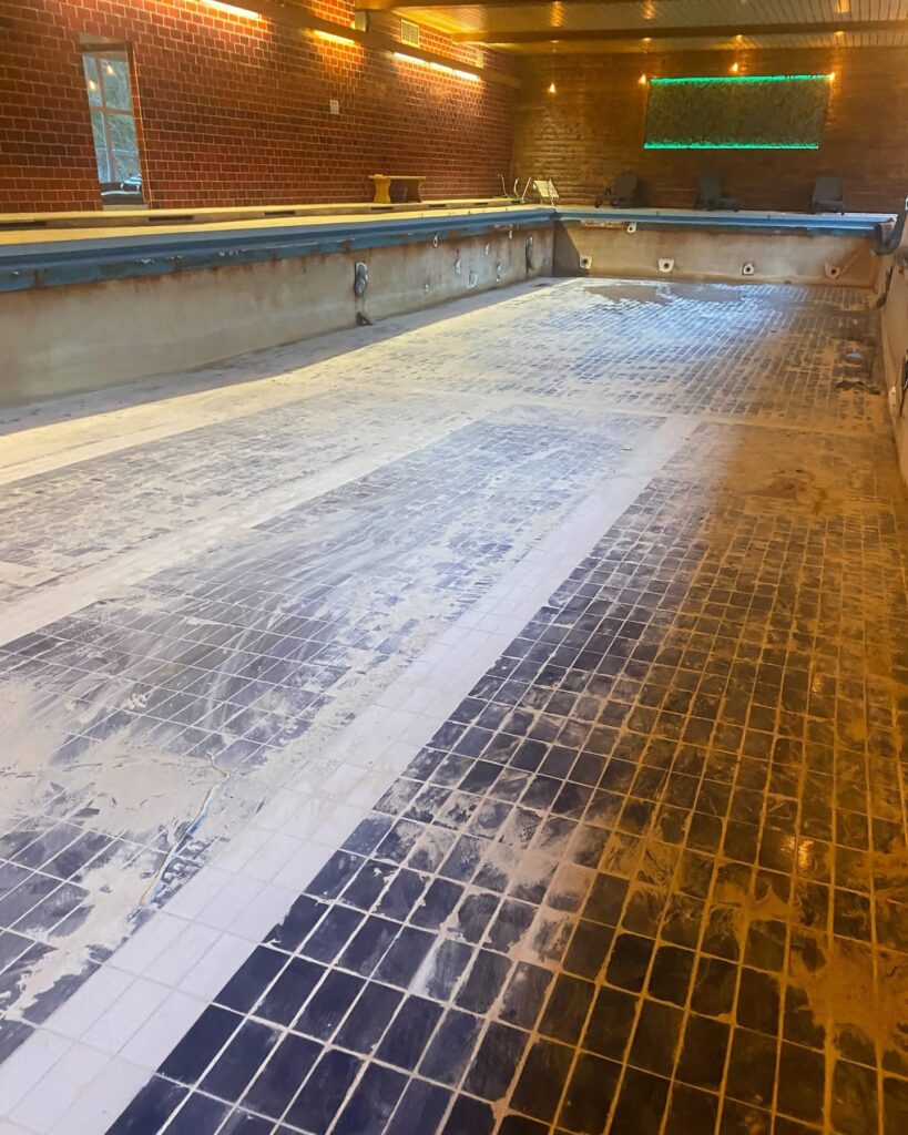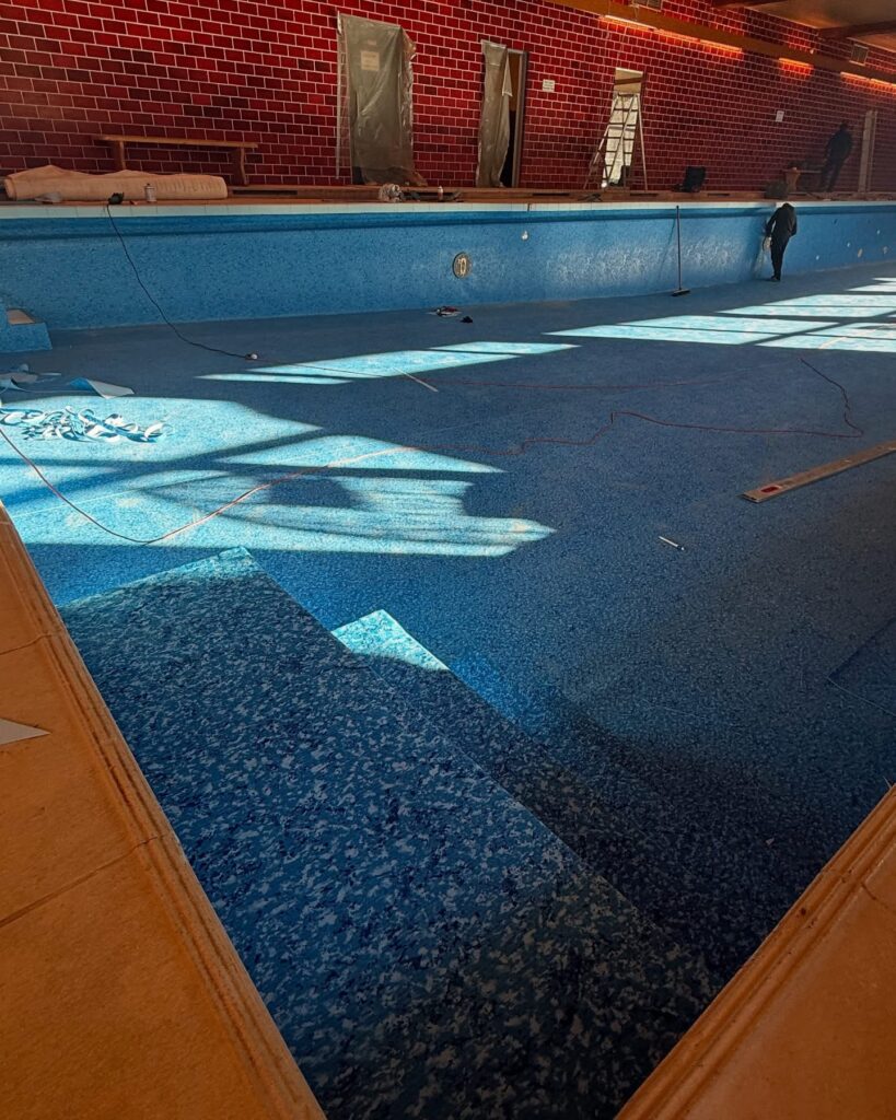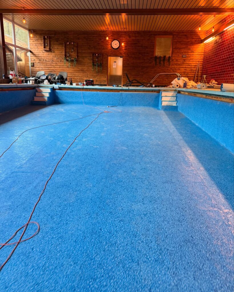 Demontaż starej folii oraz naprawa niecki basenowej.