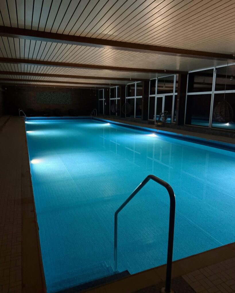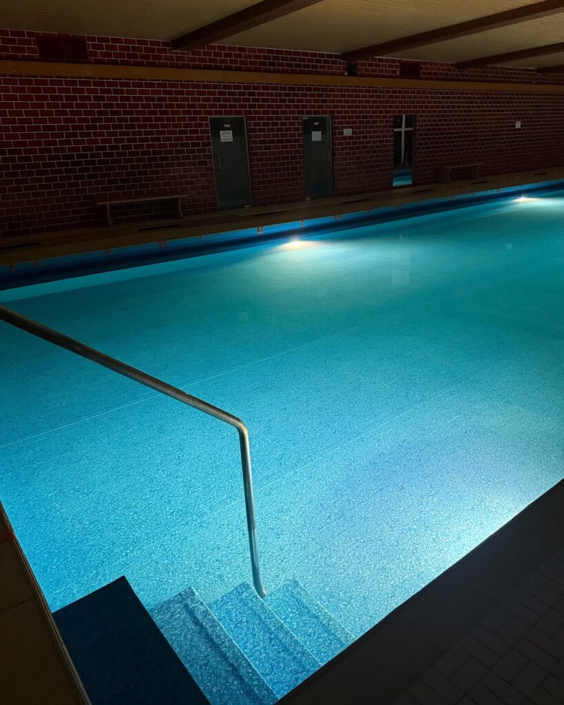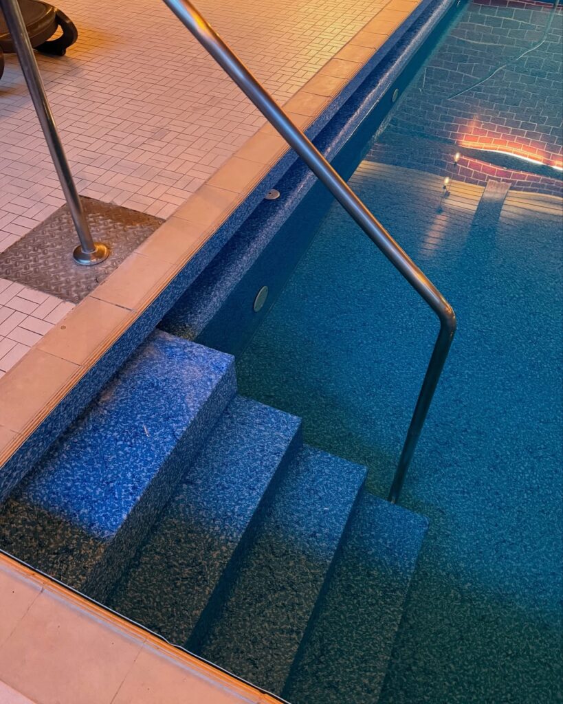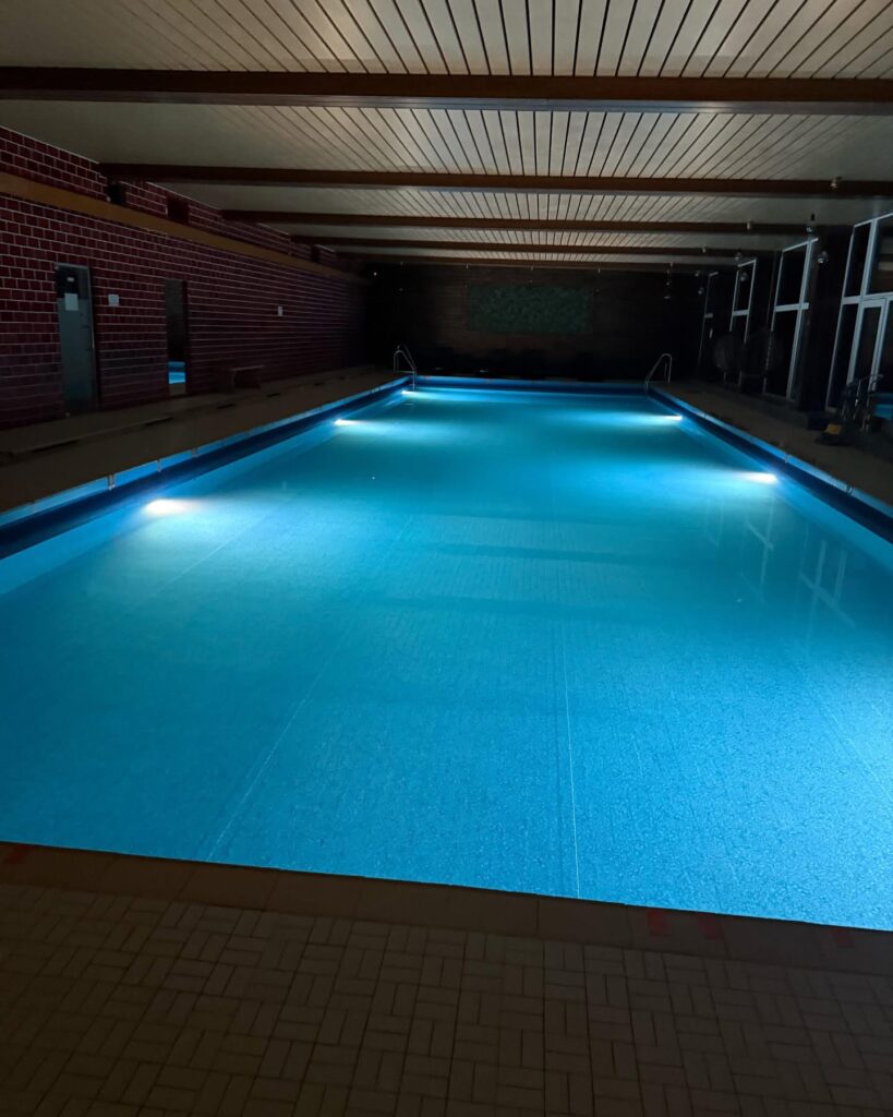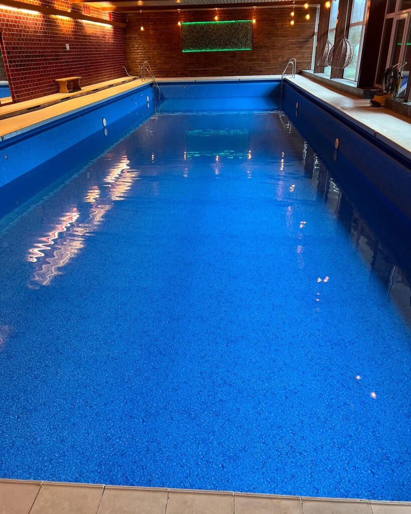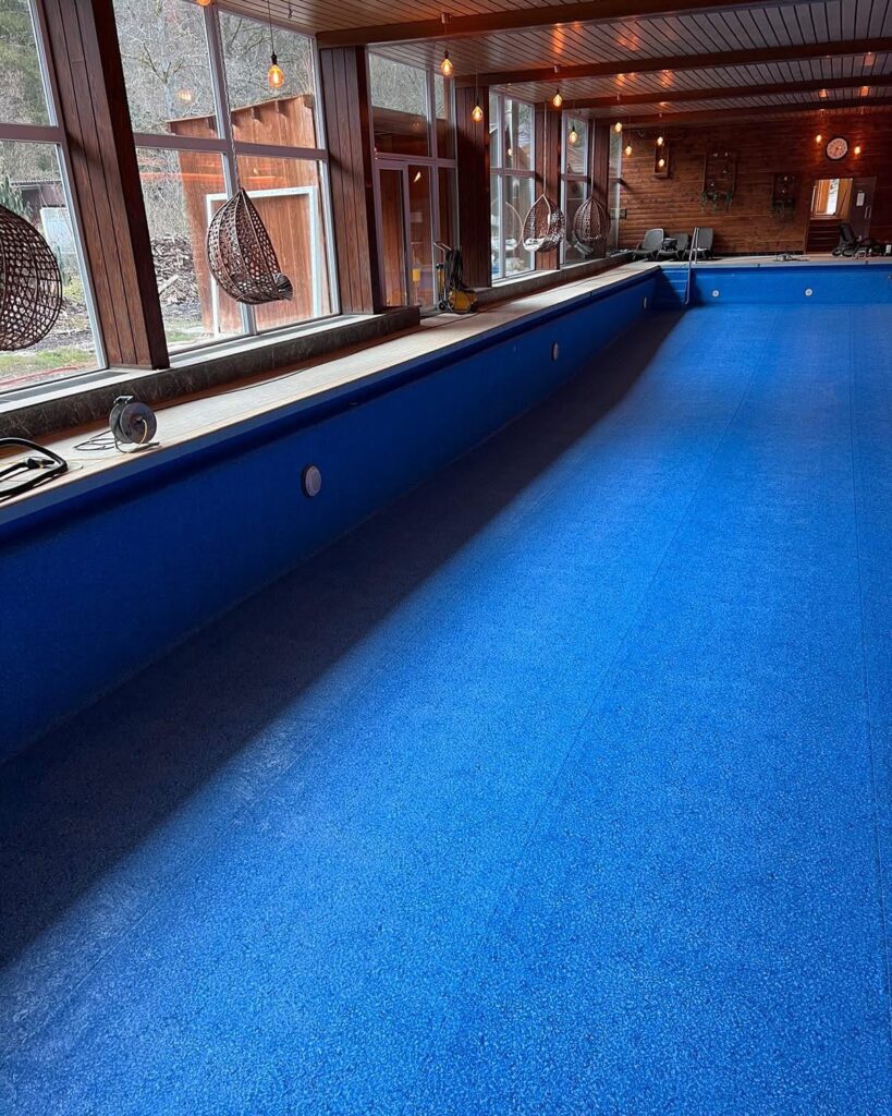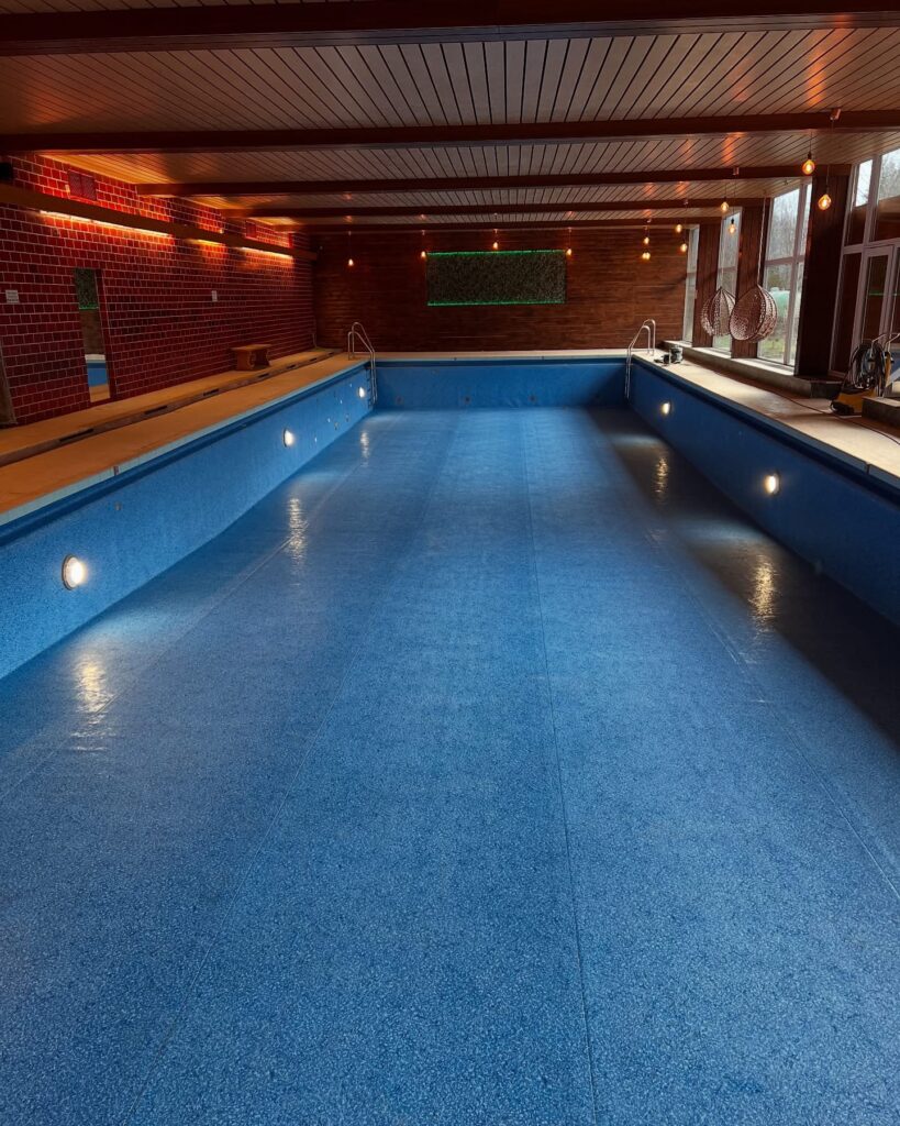 Demontaż starej folii oraz naprawa niecki basenowej.